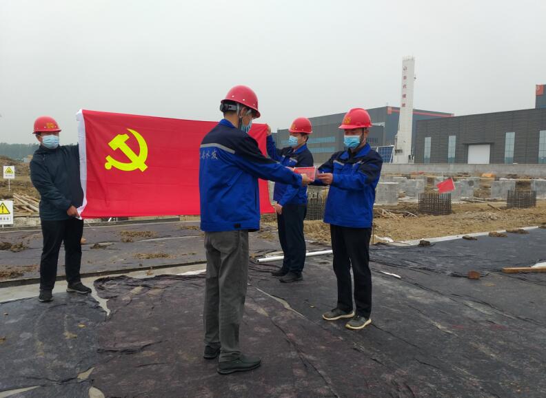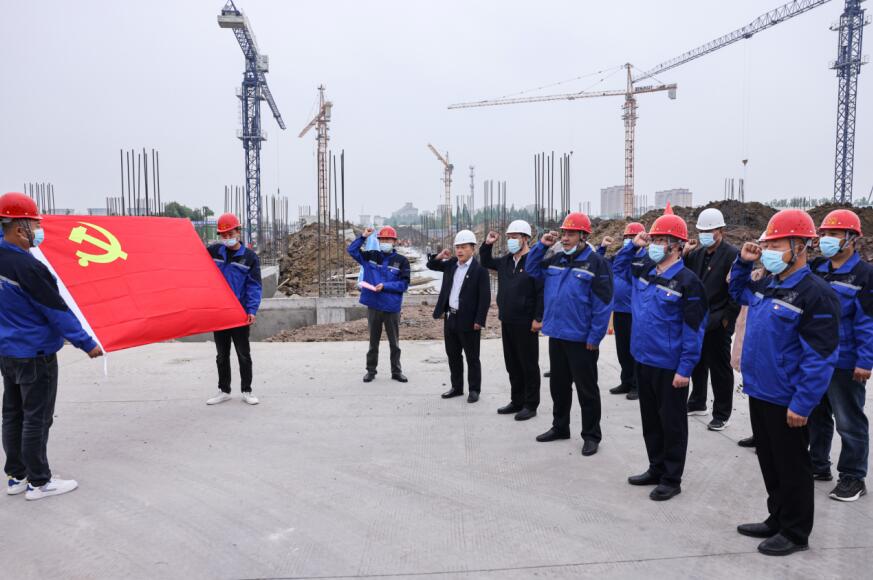 為進一步加強黨建統領,發揮黨組織的戰斗堡壘和黨員的先鋒模范作用,5月10日,大禹水發集團聯合臺發集團、區建筑公司在施工現場舉辦“臨時黨支部”授牌儀式。