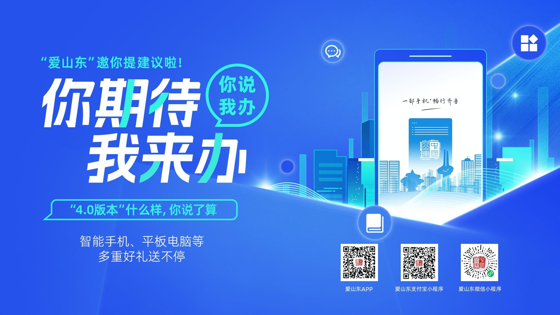 頁面不夠美觀?想辦的服務找不到?希望實現多場景“居民碼”?“愛山東”4.0版本什么樣,你說了算!值新版本開發建設之際,“愛山東”政務服務平臺面向全省開展“你說我辦”活動歡迎廣大用戶朋友們積極參與。“聽民聲,解民憂”,我們將根據您的建議打造更加便民利民的政務服務平臺。